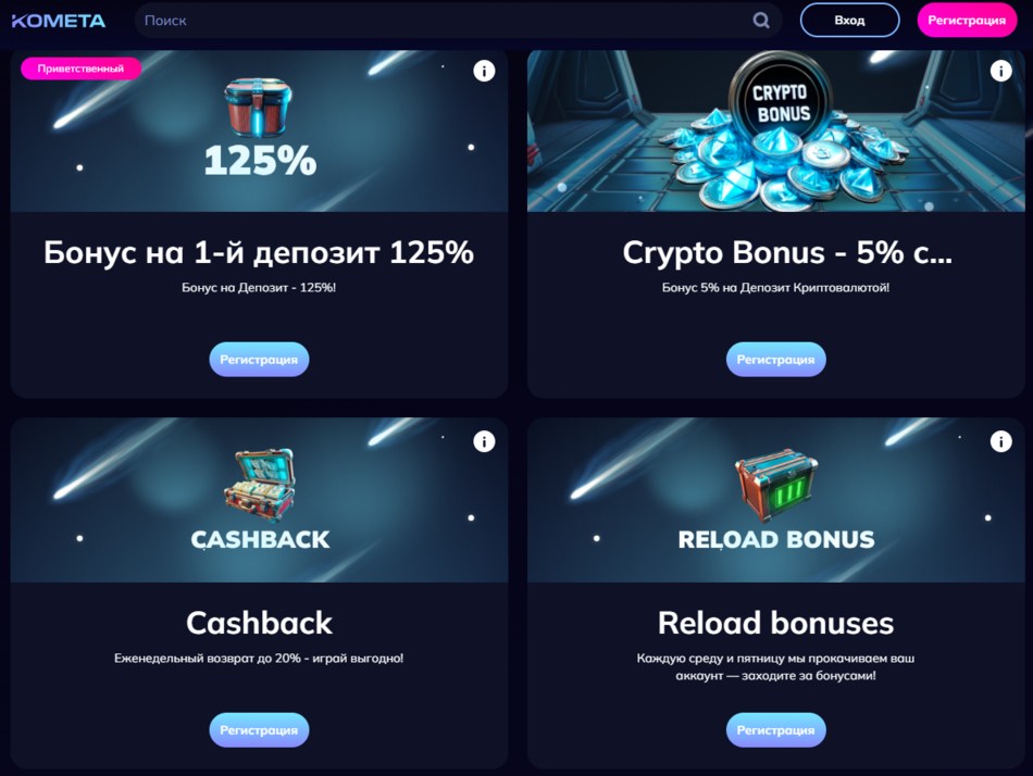 Система бонусных предложений для клиентов Kometa casino онлайн